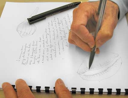 On Day 1 you'll learn some right-brain techniques for scribbling sketches that are quick, fun, and add a lot of pizzazz to your journal, plus some basic drawing pointers in case you want to expand your skills further Esther's Shell Page... (this will get you started, but if you haven't done much sketching before, you might want to take Irene's Basic Nature Sketching class either before or after this class).