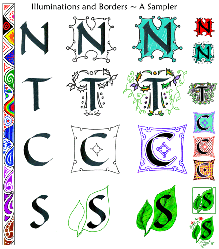 You'll explore Initial Caps and borders... ways to combine your creative writing with your drawings, photos, and colorful column dividers. You'll create illuminated initial caps and simple, colorful starting letters and titles for your journal pages. You'll finish this workshop with a head full of ideas and possibilities, and with your right brain primed with new experiences and skills.